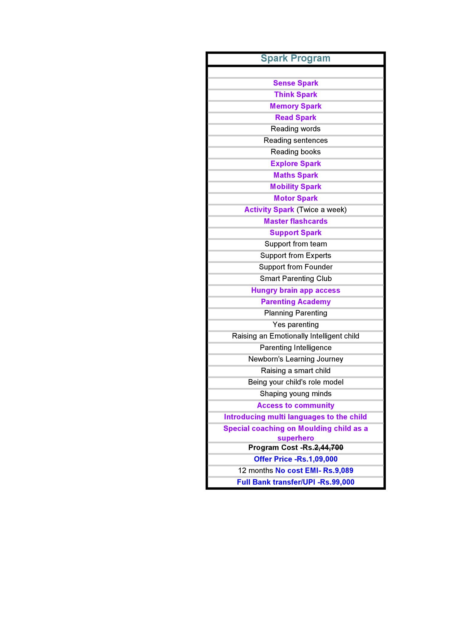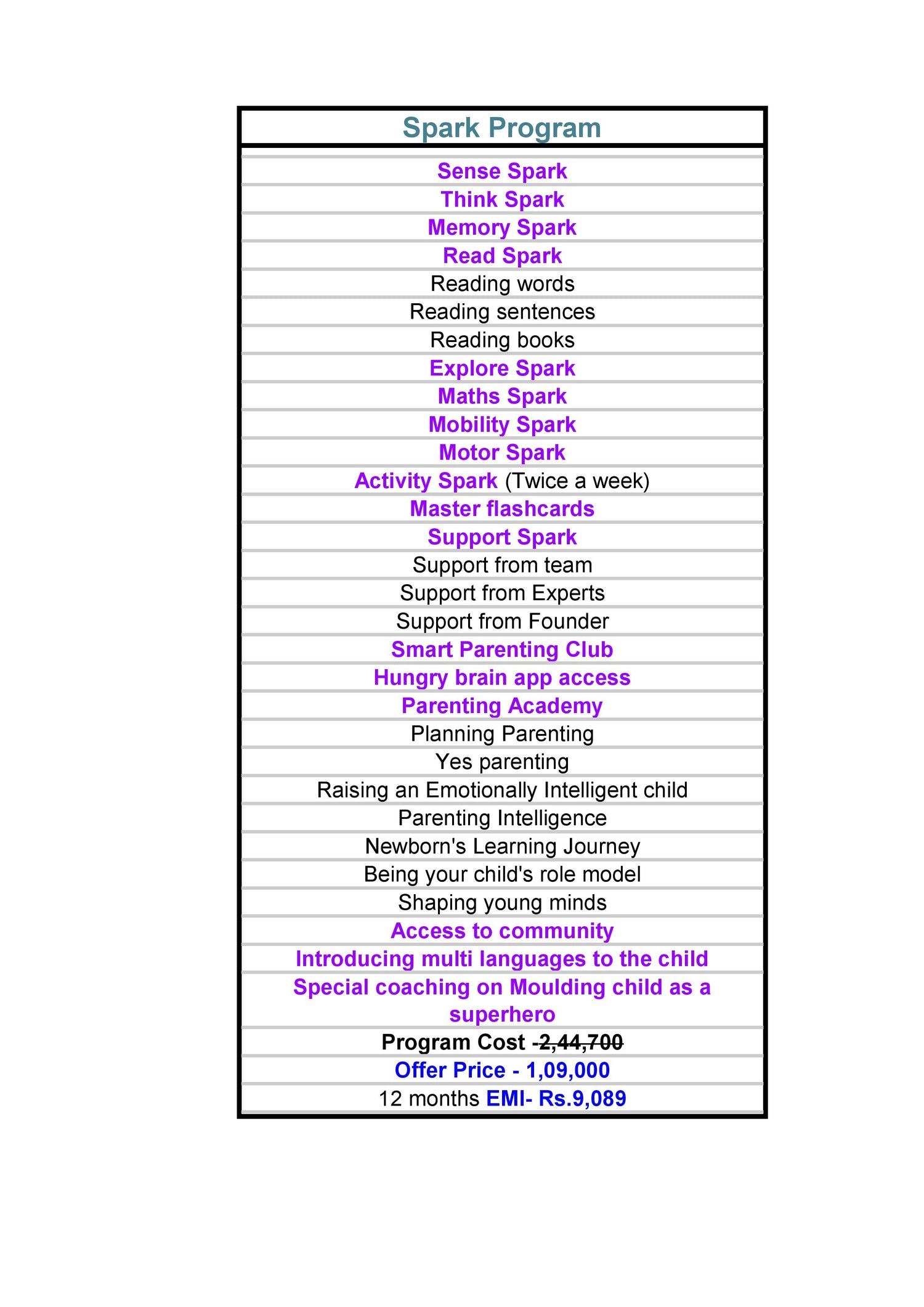 Spark program acts as a boon to working parents. While you are focusing at your work in the office, your loved ones brains are developing well. its easy to follow instructions and parent support to the care taker ensures that the baby is learning and growing well in your absence.