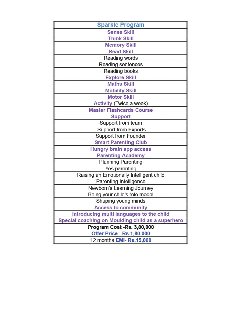 The program has been used since my daughter was 3 months old; she is now 2 years old. She can read English, Hindi, solve equations, and understands square roots and cubes. She has a passion for learning new things and we have witnessed incredible progress with the hungry brain programs ♥️🤩
